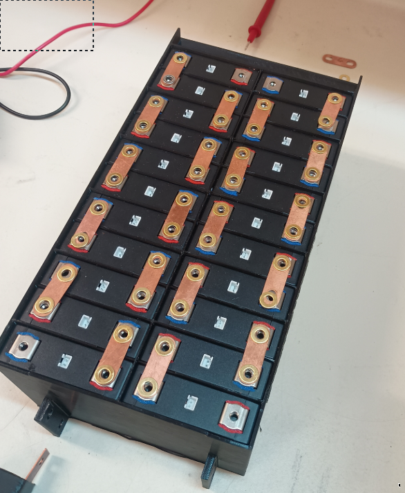 In MD25 and MD26, we will be using the Molicel P45B 21700 Li-ion Battery Module from Enepaq. These were chosen over custom modules to reduce the development time associated with custom manufacturing modules. Manufacturing modules have been attempted before however this proved time consuming for our small team. This lead to the choice to use the Enepaq modules. There are drawbacks associated with this choice such as higher cost, lower power density and less customisability. For example the Enepaq module uses a special temperature sensor that is incompatible (NB. not completely) with the Orion BMS 2 thermistor expansion module (which was used in MD25). Our current module configuration is 4 cells in parallel.